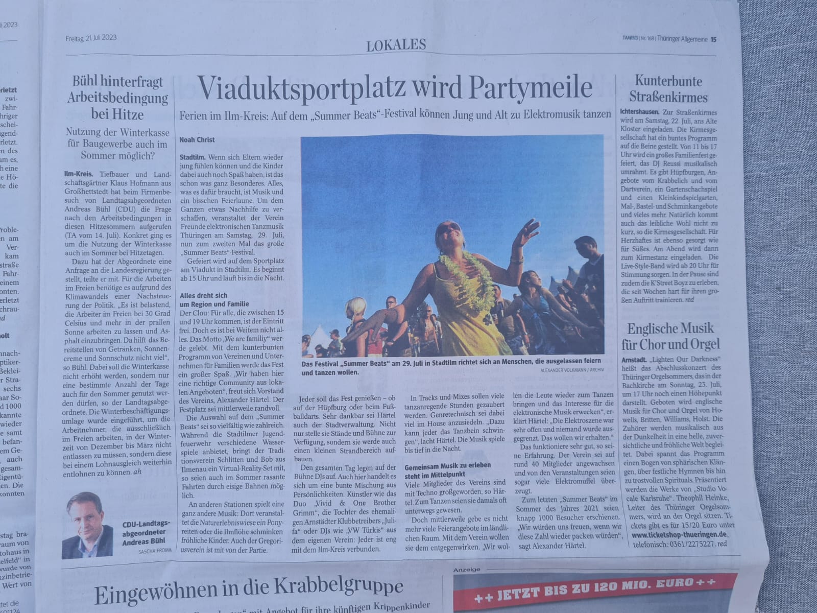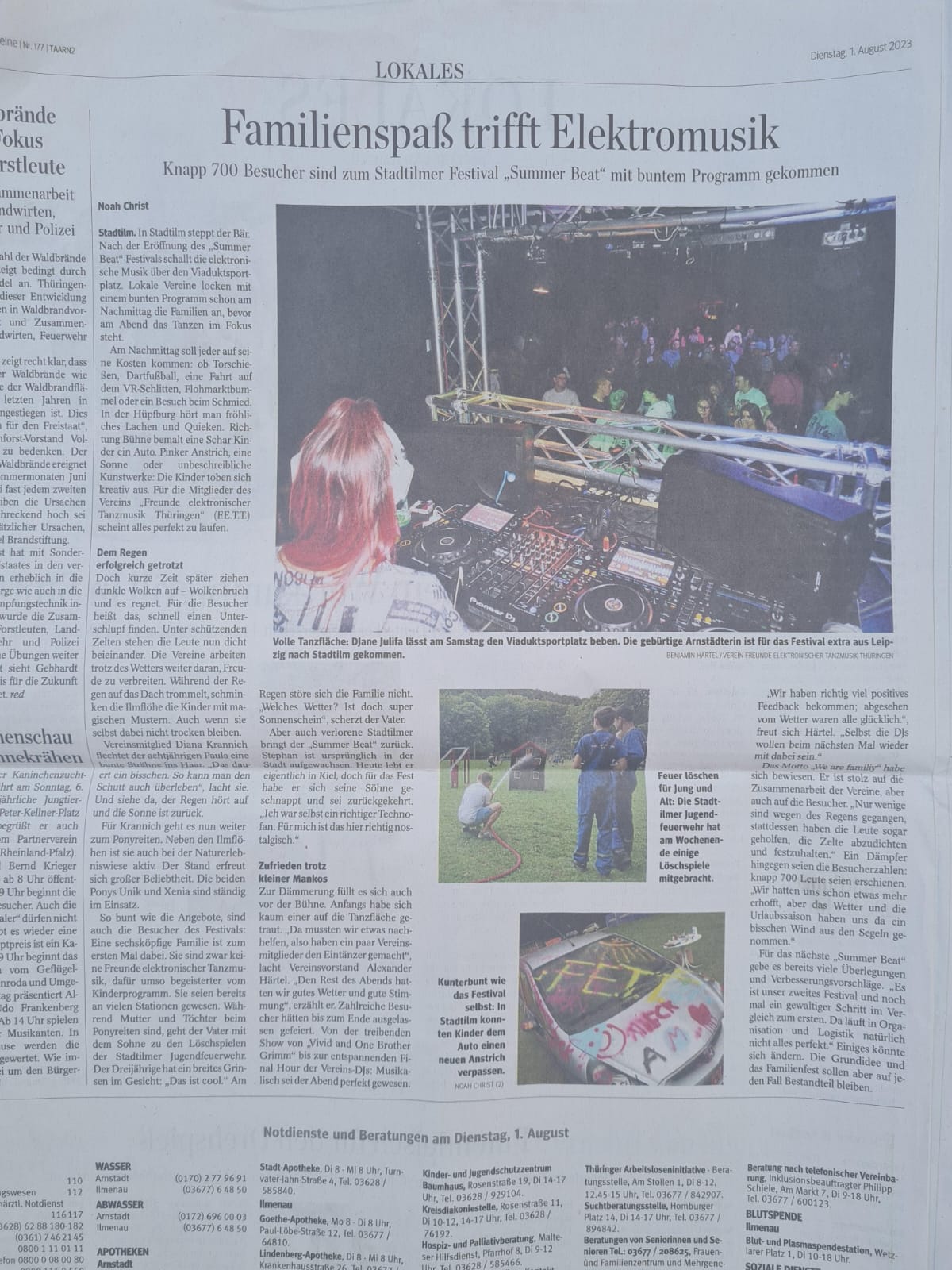 📰✨ Großes Dankeschön an die Thüringer Allgemeine Ilmkreis und speziell an Noah Christ! Eure fantastische Berichterstattung zum Summer Beat 2023 ‚We are family‘ hat uns echt begeistert. Dank euch konnten wir die Magie des Events noch weit über den Tag hinaus teilen. 🎉🎶