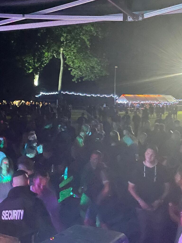 Wir sind teilweise an unsere körperlichen und geistigen Grenzen gekommen…das riesen Gelände,das ständige hin und her gerenne zwischen den verschiedenen Stationen die ständige Frage, wo ist der, wer hat den Schlüssel, Mixbude 2 geht krachen, wer hilft,, Klohpapier ist alle, in welchem Auto ist das, wo ist der Autoschlüssel, wo ist dein Muttizettel usw….wie geil. Familie und Freunde sind kurzerhand eingesprungen obwohl sie eigentlich selbst feiern wollten. Wahnsinn.. Kurz vorher sagte noch der Bierlieferant ab, der LKW mit unserer ganzen Ware wäre fast ne Woche später gekommen, von allen möglichen Leuten wurden Kabel besorgt usw….aber alles egal. Im Nachhinein lachen wir über das Chaos unserer ersten großen Veranstaltung und haben viel dazu gelernt.